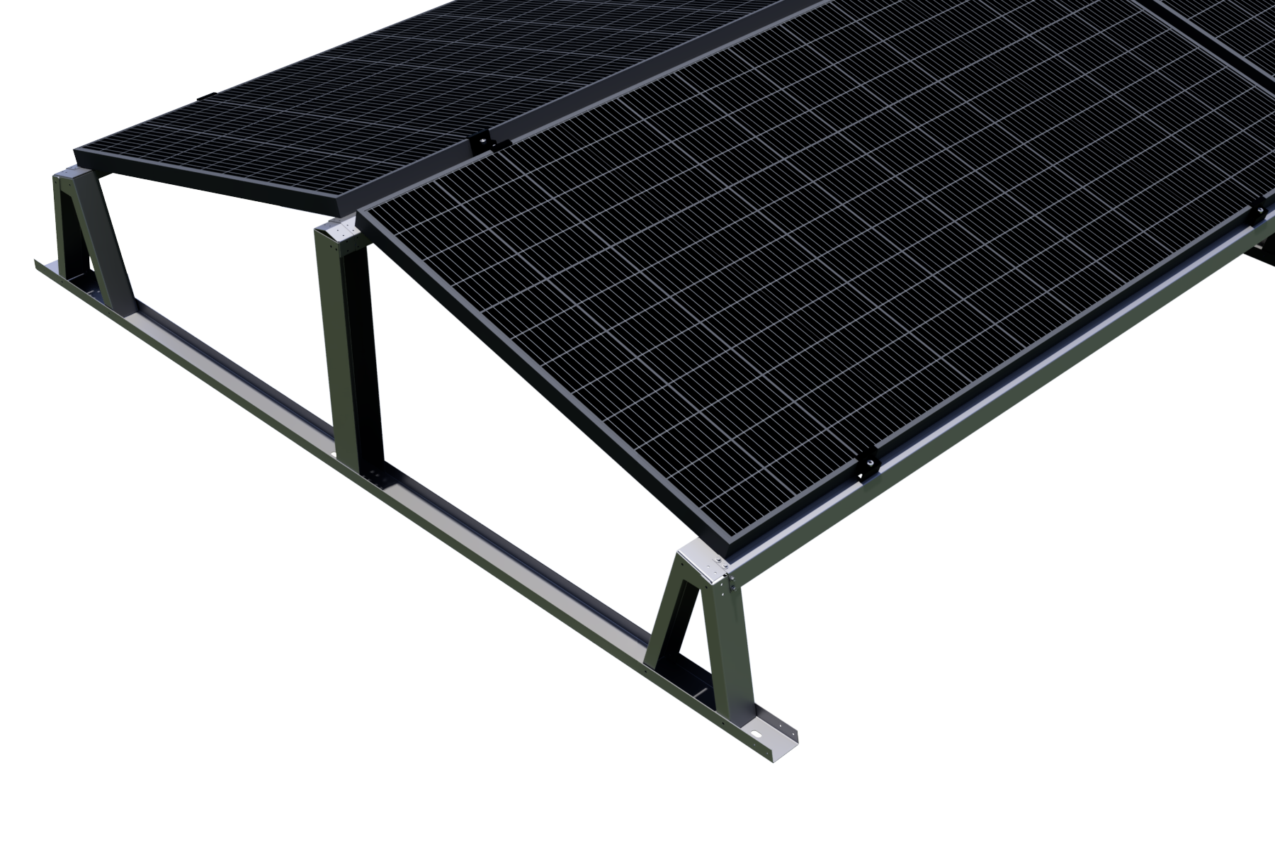 Konstrukcja KDP-BIFACIAL-WZ-I to konstrukcja przystosowana na dach płaski. System umożliwia montaż modułów w poziomie oraz jest inwazyjny. Konstrukcja umożliwia montaż bifacialnych paneli fotowoltaicznych. Konstrukcja zaprojektowana dla instalacji skierowanych na wschód i zachód. Aby zapewnić odpowiednią ochronę przed korozją, konstrukcja fotowoltaiczna KDP-BIFACIAL-WZ-I wykonana jest z czarnej stali S320 z powłoką metaliczną Magnelis®.
