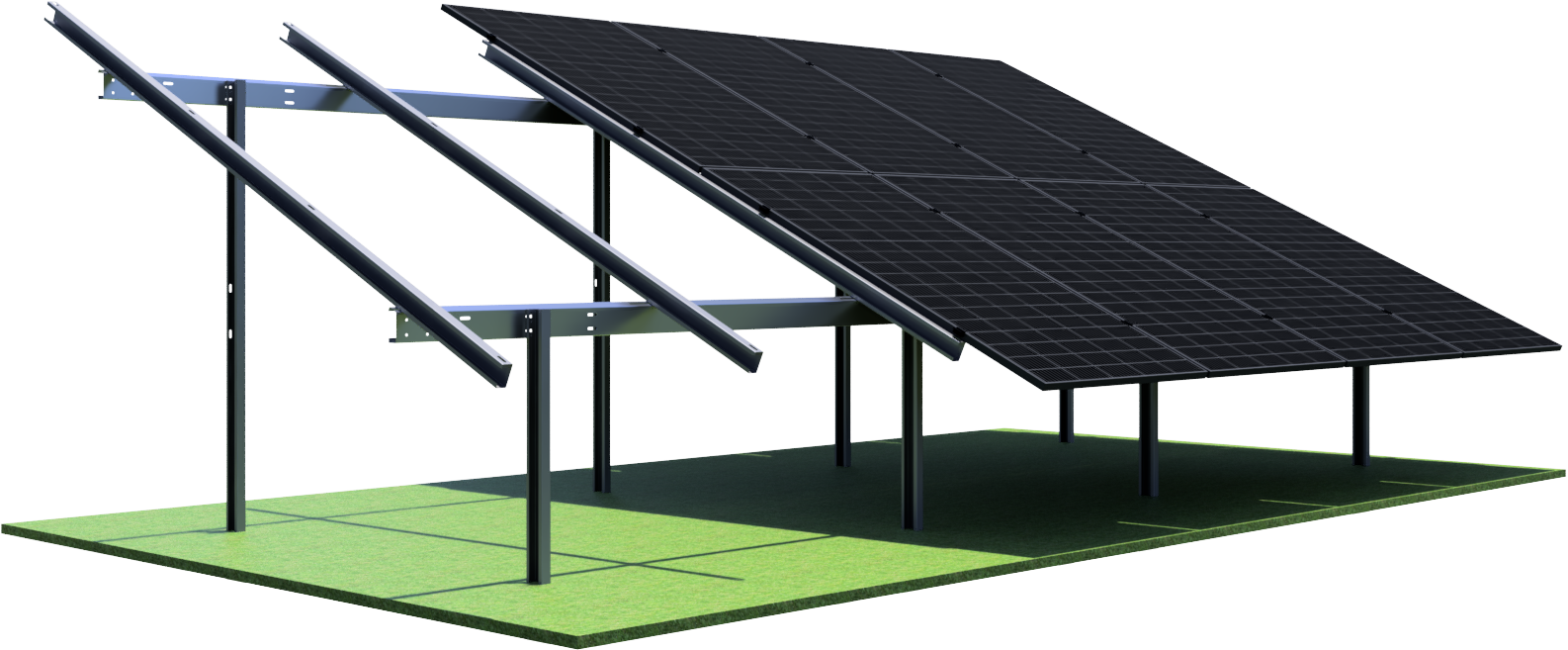 Kompletny system umożliwiający zamocowanie paneli w układzie pionowym. Konstrukcja umożliwia montaż bifacialnych paneli fotowoltaicznych. Aby zapewnić odpowiednią ochronę przed korozją, naziemna konstrukcja fotowoltaiczna KN-BIFACIAL wykonana jest z czarnej stali S320 z powłoką metaliczną Magnelis®.